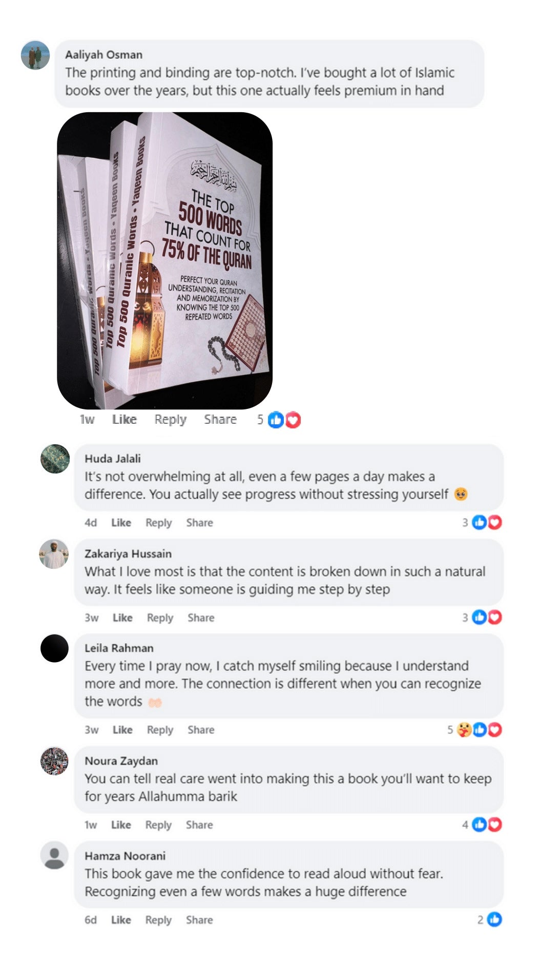 Yes – it’s true. Due to repetition in the Quran, around 500 unique Arabic words make up nearly 75% of the entire text. By learning these high-frequency words, you’ll begin recognizing the majority of words in any verse. This shortcut massively accelerates your understanding of Quranic Arabic, even before diving deep into grammar or tafsir.